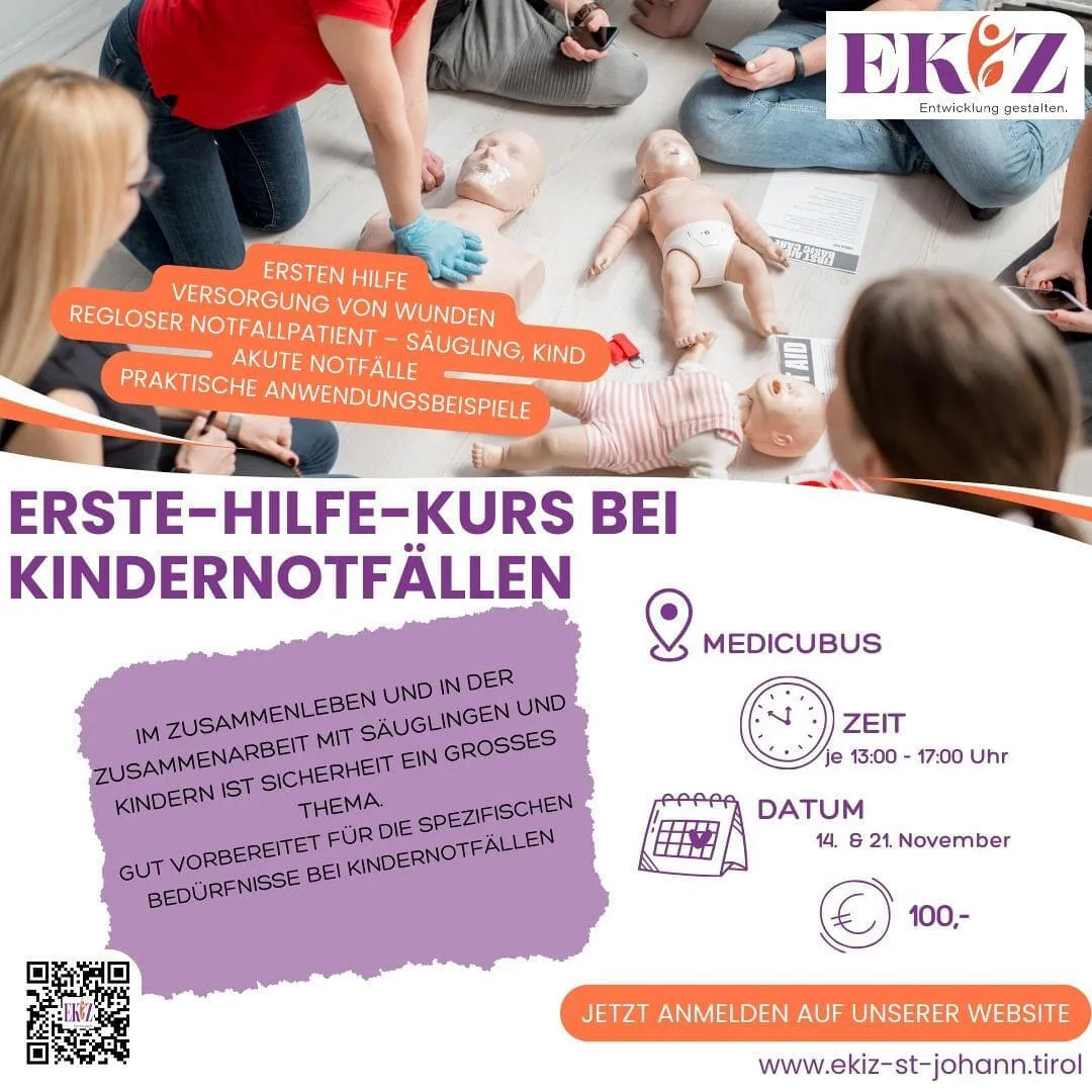 Freitag, 14. November 2025 13.00 - 17:00 Uhr EKIZ - Erste-Hilfe-Kurs bei Kindernotfällen
