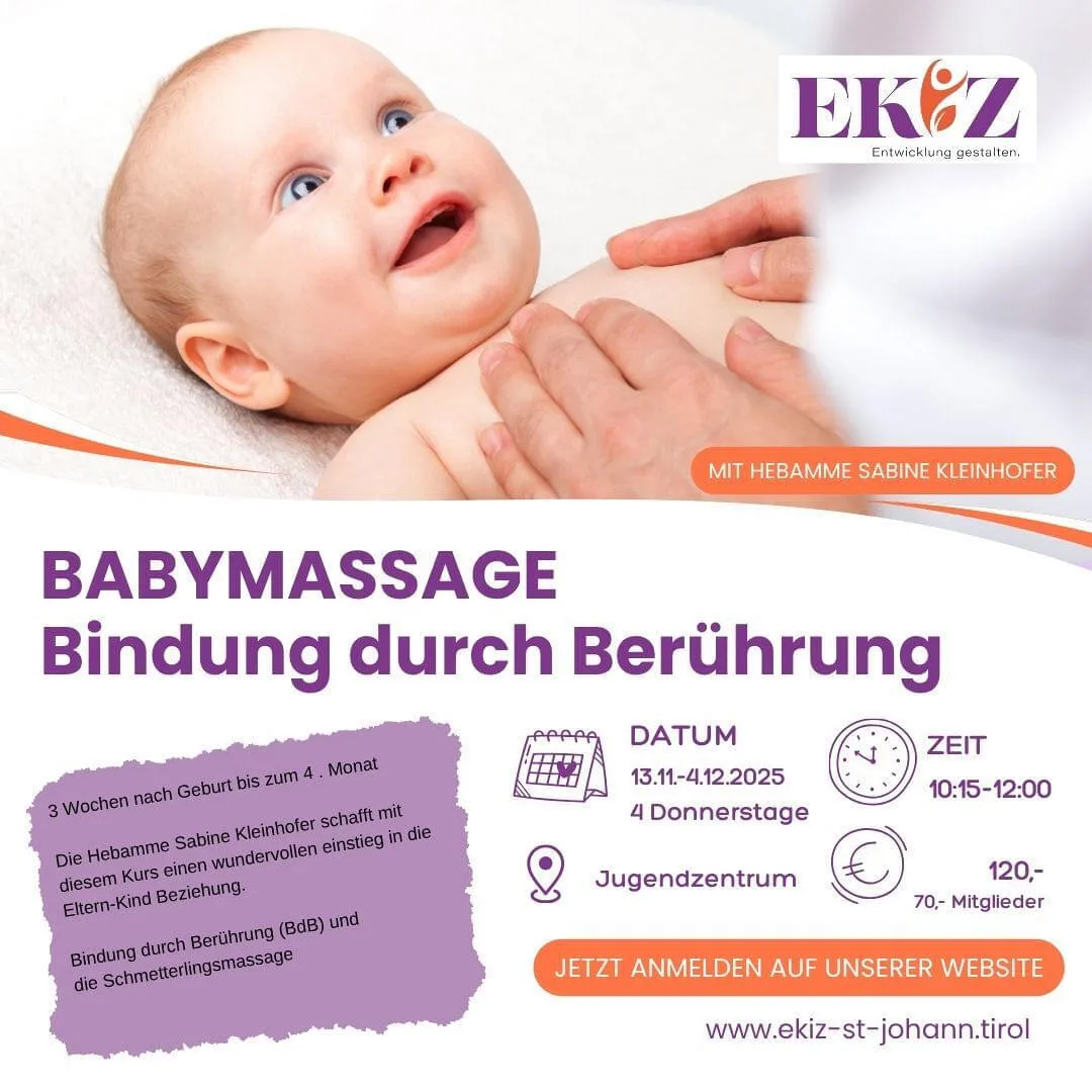 Donnerstag, 13. November 2025 10:15 - 12:00 Uhr EKIZ - Babymassage