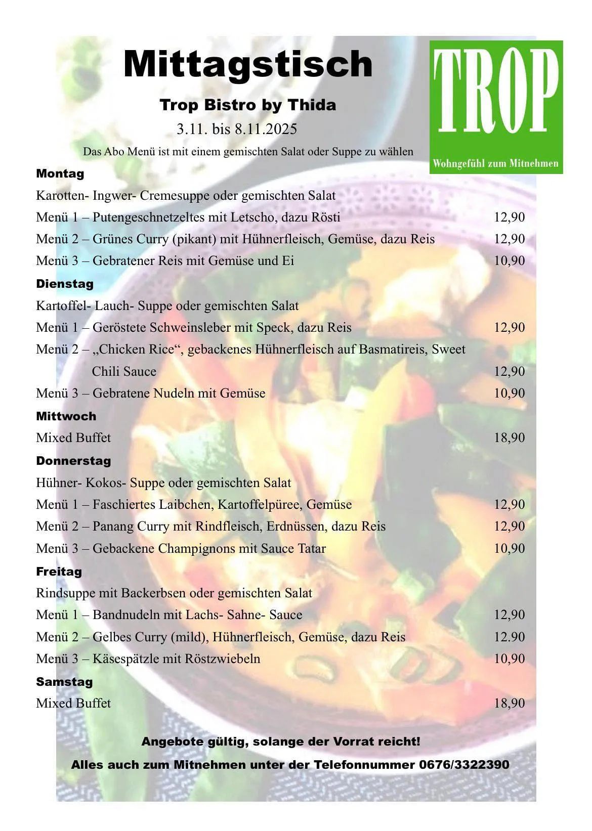 mit aktuellen Mittagsmenü
